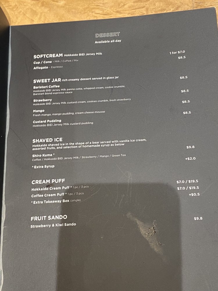 The menu also features unique items like the Shiro Kuma shaved ice, a refreshing treat topped with homemade strawberry syrup that perfectly complements the vanilla ice cream and fresh fruits. Despite a slightly higher price point, the quality is undeniable.